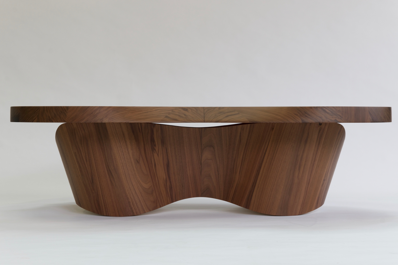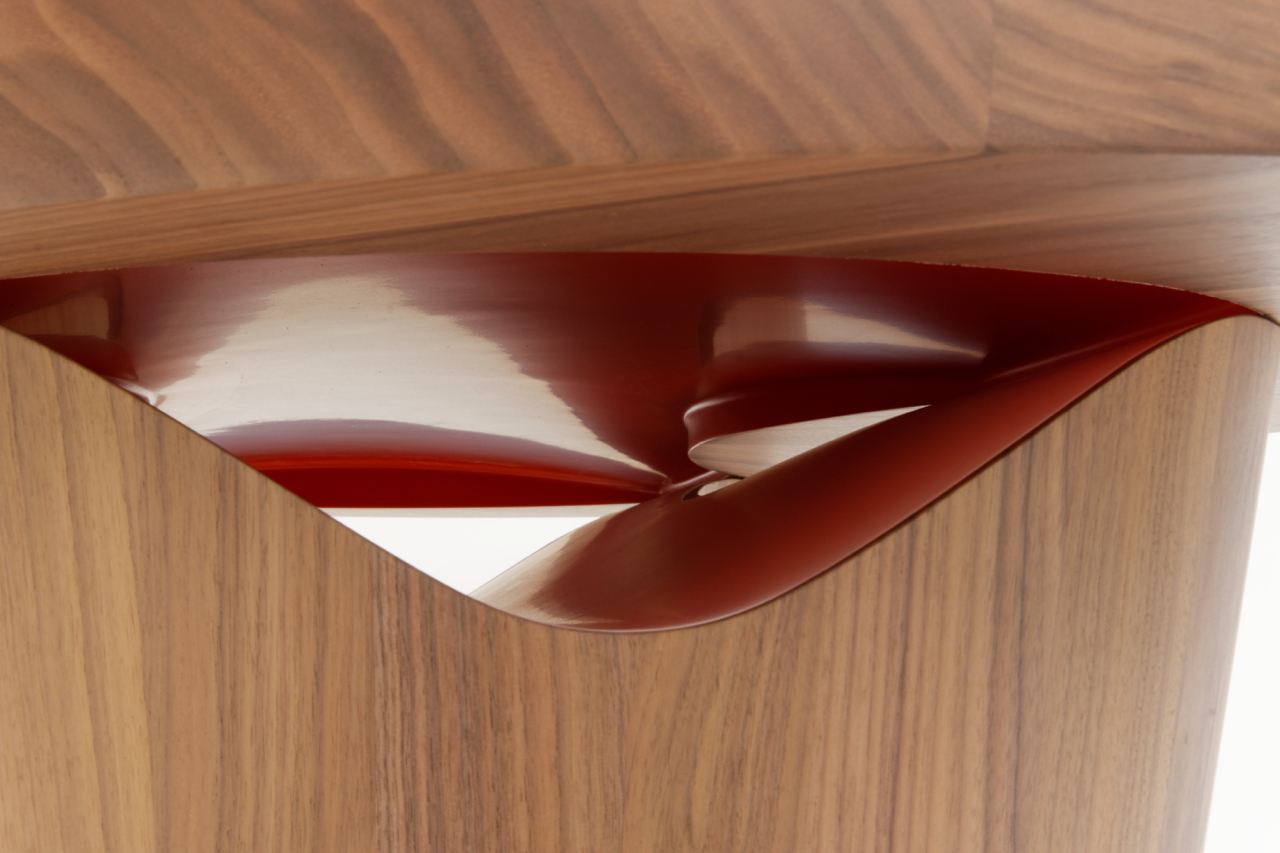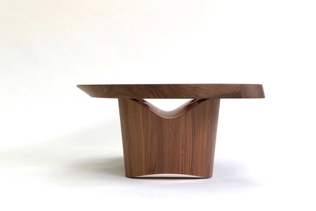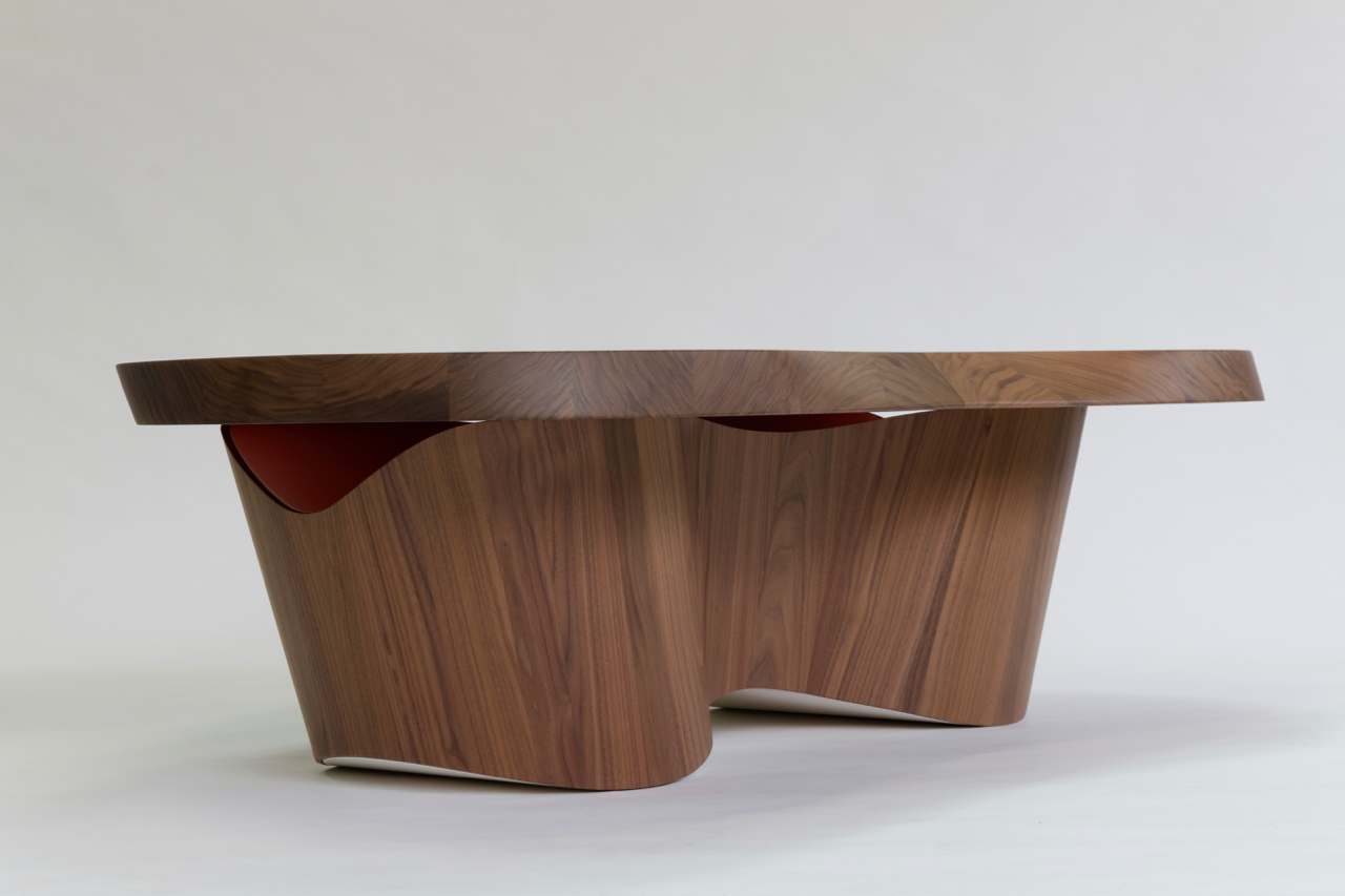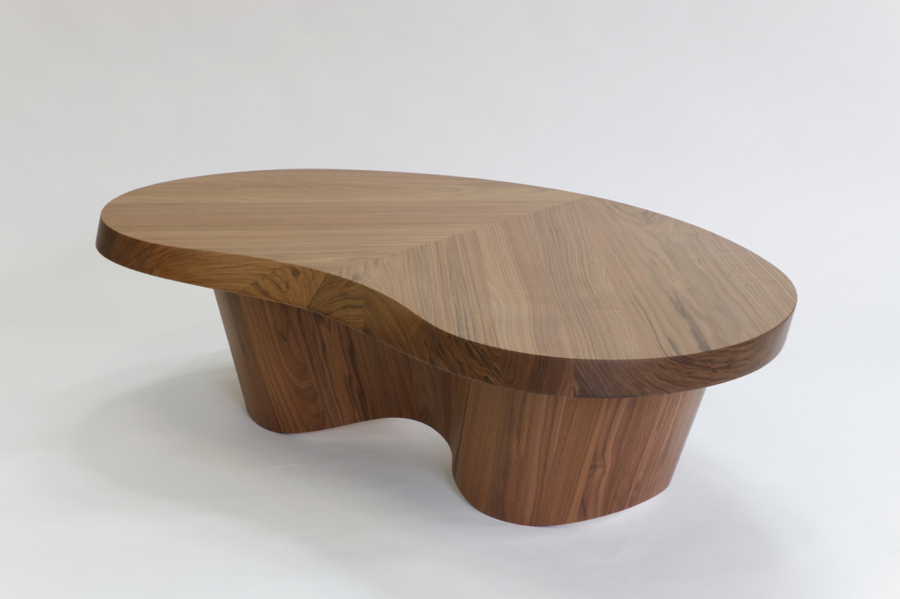 Matériaux : Noyer US massif, vernis mat, Lab laqué.